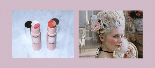 The three shades of these stick blend into one healthy rosy slightly shimmery effect finish, stroke onto the skin and blend with fingers to create a French 18th century aristocratic Marie-Antoinette effect.