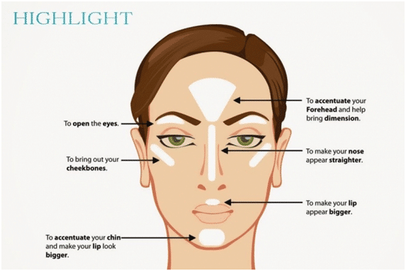 Highlighting the face, or another term strobing, is when you only use an illuminizer/highlighter to emphasize the high points of the face. This minimalistic technique creates a ‘glowy’ from within look.