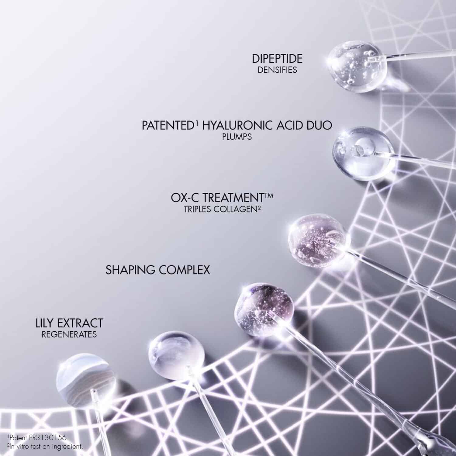 It combines a patented¹ shaping complex with a patented² duo of hyaluronic acids for a plumping effect.