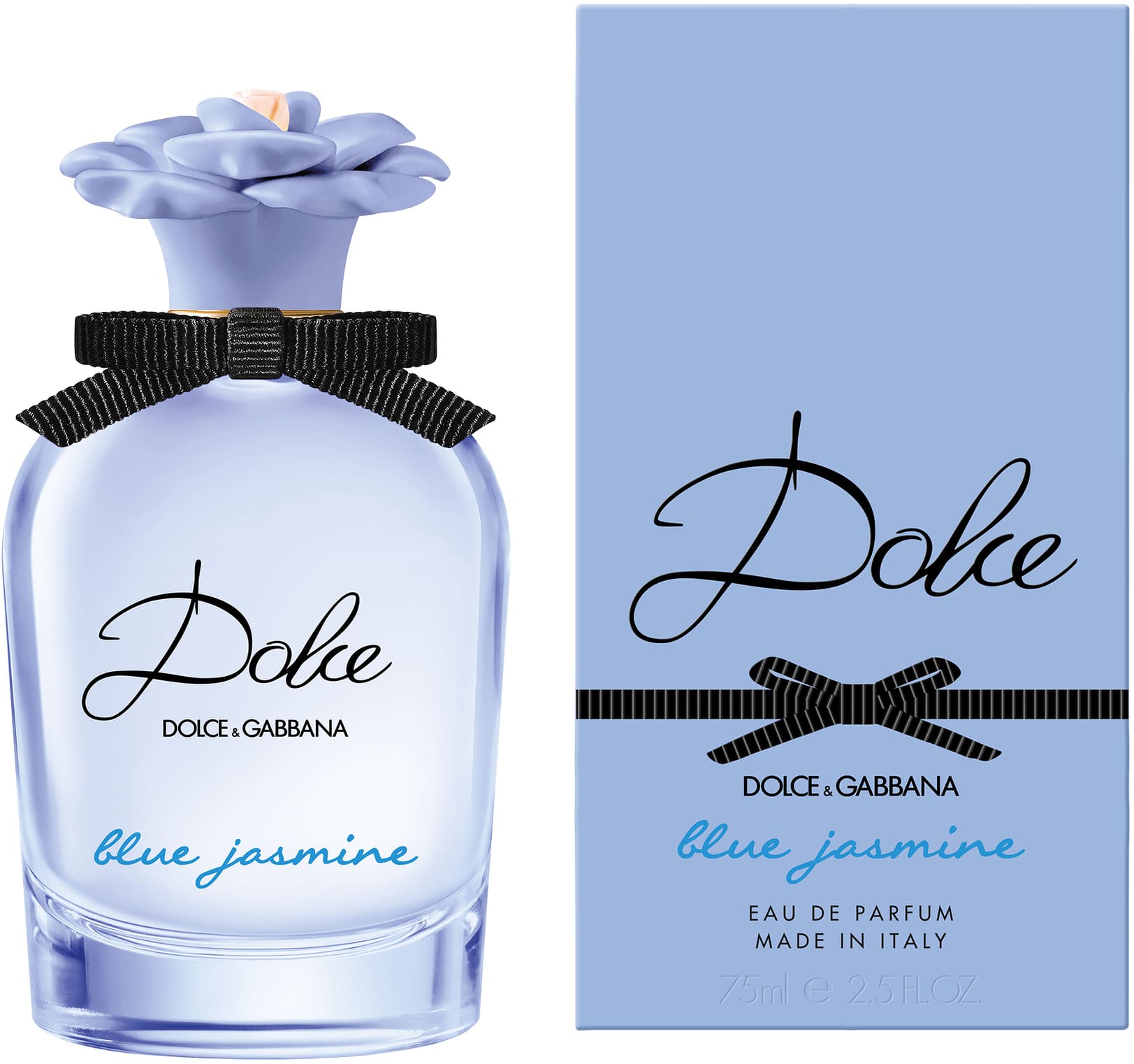 The women's fragrance Dolce Blue Jasmine Eau de Parfum, is a cosmopolitan scent—both energetic and delicate—that revels in the sweetness of Sicilian blue Fig, dewy and charismatic Jasmine sambac and charming Cedarwood.