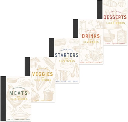 This great set of five notebooks is perfect for any professional, beginner or even amateur chef who does not mind spending hours, days, weeks in the kitchen. The notebooks are divided into sections with rows of pages and a planner or bulletin journal pages. They are convenient for writing recipes, as well as for notes, drawings, pictures, diagrams and even sections .Each of the notebooks has 32 pages, on which you can write down 15 recipes, a sewn cover and a common case in which to keep them all together.