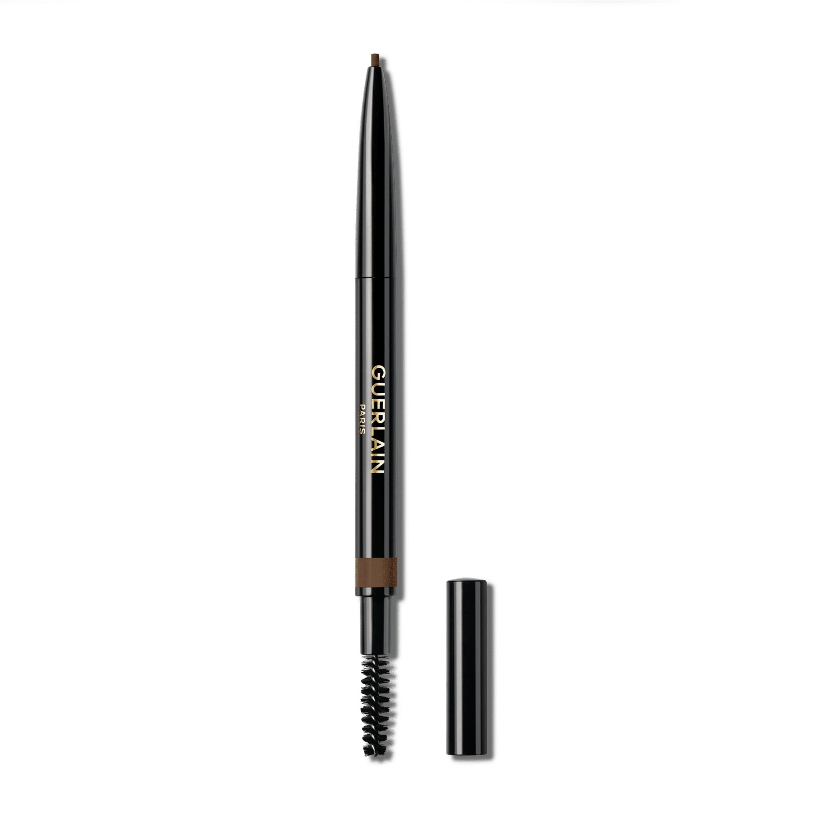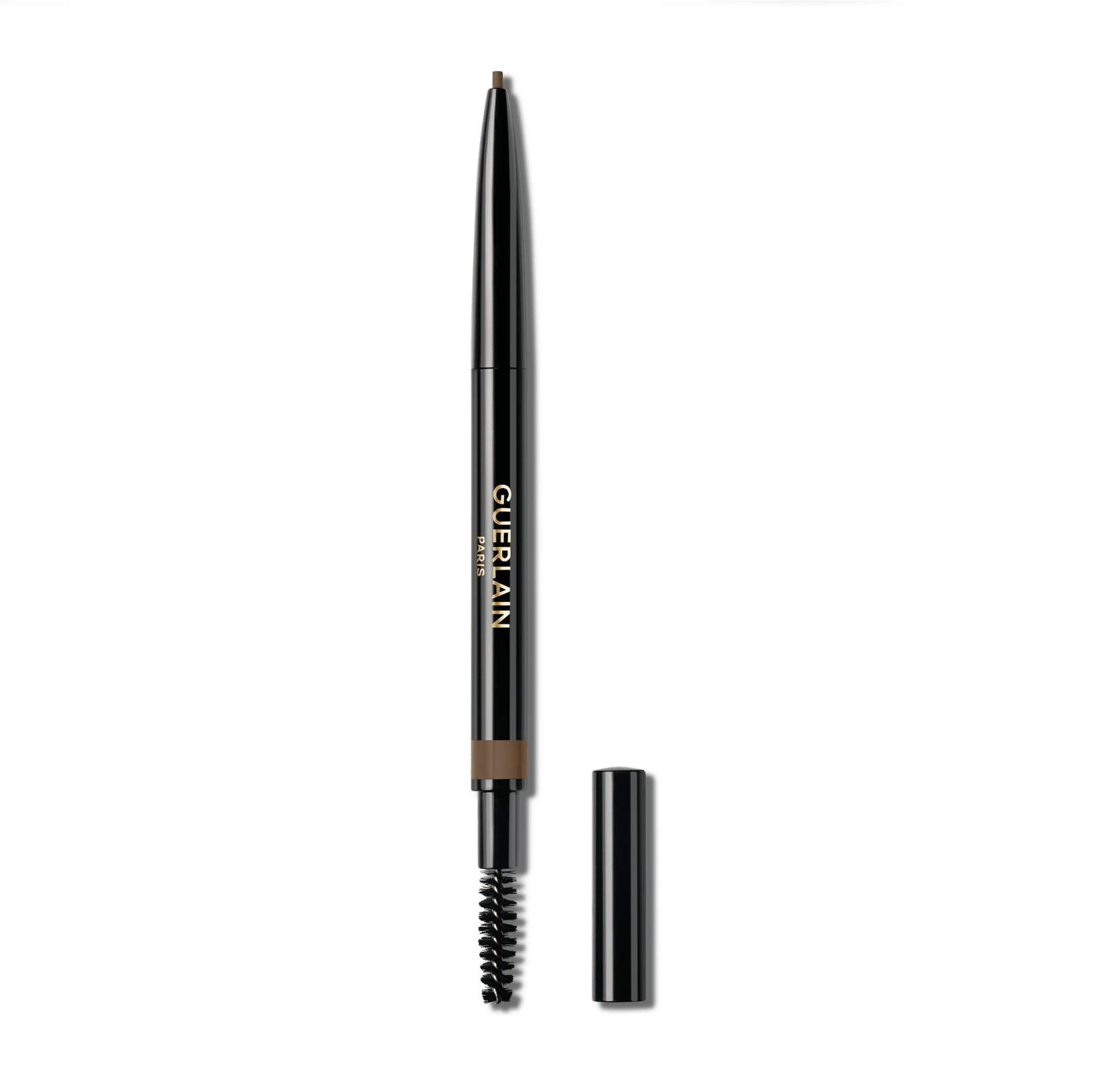 A double-ended pencil: a precise and angled retractable tip that does not need to be sharpened, to draw and fill in your eyebrow line, and a brush for blending.