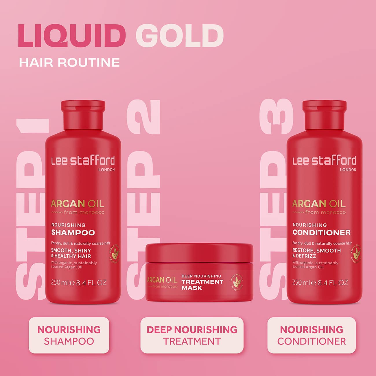 Prepare to lather up with the restorative, reparative Lee Stafford Argan Oil Nourishing Shampoo. Designed for dry, coarse, damaged hair, this luxurious shampoo cleanses hair of product build-up, residue and excess oils, while bathing strands in intense moisture for healthy, shinier hair.