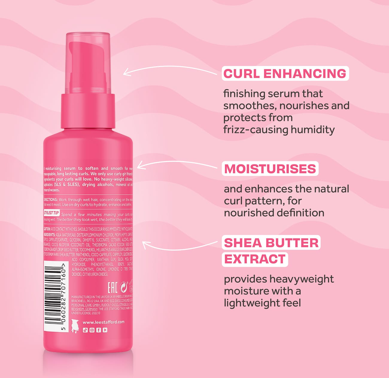 Want glossy, defined, smooth curls that are bouncy and full of moisture? Then Lee Stafford For The Love Of Curls Serum Lotion For Waves, Curls & Coils is your perfect hair care partner. Created with moisture-hungry curls in mind, this overachieving hair serum will help your curls spring back into formation. Simply smooth on to boost moisture, enhance your curl pattern and fight against frizz.