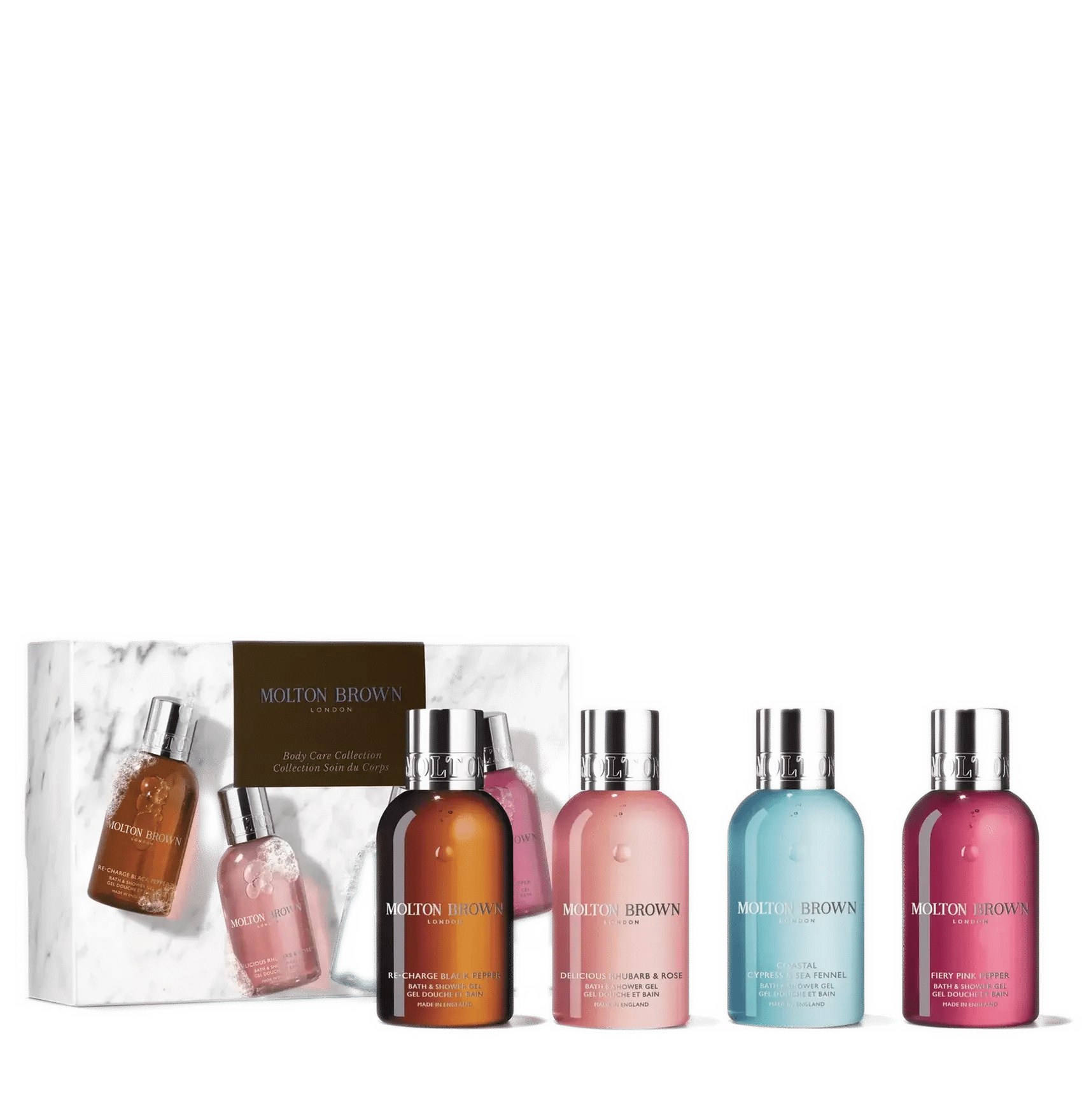 Elevate your travel bathing ritual with our iconic quartet of reassuringly warm and freshly blooming body washes, carefully chosen to revive the senses from sunrise to sunset.