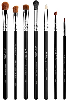 Get 7 classic eye brushes for eyeliner, eyeshadow and brows including our best-selling SigmaTech® fiber blending brush — the E40. Look simply flawless with this basic eye brush set, featuring every professional makeup brush you need to define your eyes and evenly apply color.