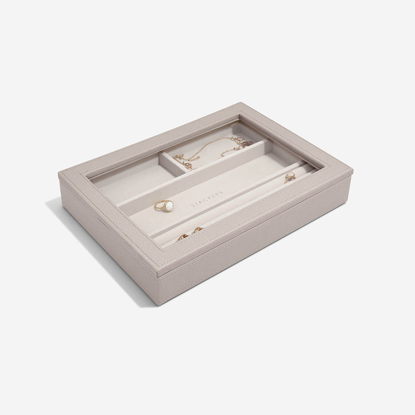 This is a great addition to your Stackers collection. Featuring a clear glass lid, to keep your jewellery safe and visible, as well as a Classic Ring/Bracelet Layer.
